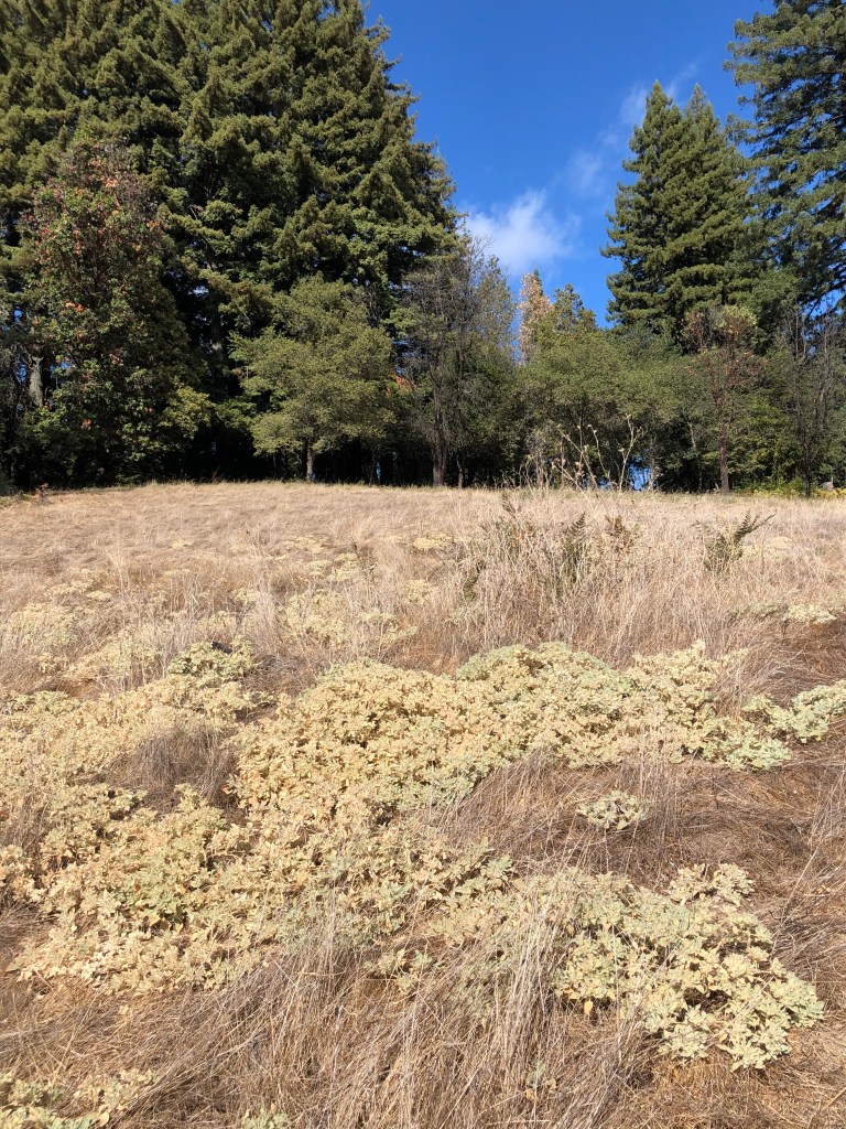 At my work, I like take my tweens on short hikes instead of muddling through another lesson in the outdoor classrooms/ disaster tents that I have to share with my colleagues. Into the mixed redwood oak forest we go, despite the fact that I carefully created lesson plans for the day and it just doesn’t work. Although this is my fourth year teaching on this campus and I have climbed and hiked many trails on this mountain, I have never in past years noticed a vestige of summer on these hikes. There is a carpet of Edelweiss-like plants covering the sunniest side of the campus trails and looking brilliant at this time of the year. Low to the ground and light green, it looks like a fluffy, cute Germander cousin that horticulturalist might considered a weed. They might give it this classification (there is no class) because in the driest months of October /November (and my, it has been a dry one) this one is alive. It is as if the forest fairies water that hillside when nobody is looking.